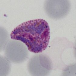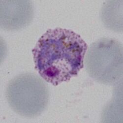 *a range of maturing schizonts will generally be present within enlarged red cells | *a range of maturing schizonts will generally be present within enlarged red cells | ||