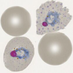 - A range of "schizont forms" will generally be present within moderately enlarged red cells