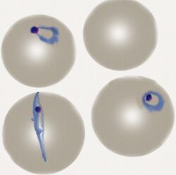 The sexual replication form resembles P.vivax although generally smaller with sme species-specific forms detectable.