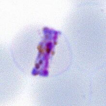 An early or late trophozoite form that is very elongated and extends close to, or entirely across, the diameter of the erythocyte. The form is frequent in P.malariae and P.knowlesi infections and can support the identification of either species - although other features must fit. Rarely, forms resembling a band may occur in other species.