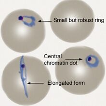 • Small but well-formed rings are typically seen sometimes with a central chromatin dot or elongation