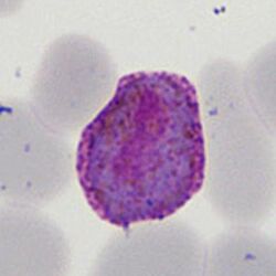 - Numerous red/purple Schüffner's dots are present in the cytoplasm of red cells